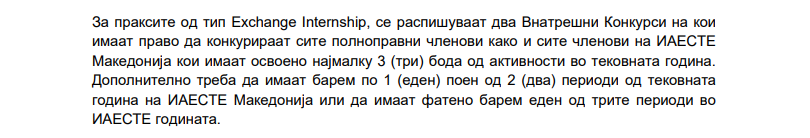 Доколку станете член и исполните одредени дополнителни услови, можете да бидете дел и од Внатрешниот конкурс за пракси, односно: